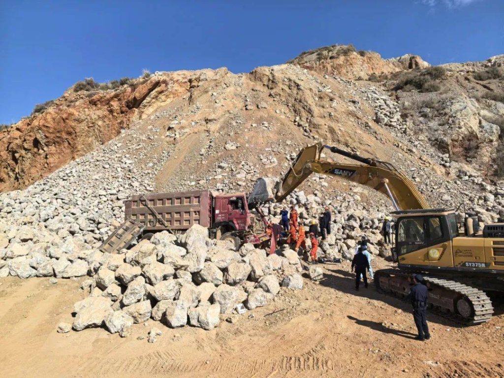 What came into view was a large open pit — a terraced excavation carved into the hillside, about 100 meters wide and 30 meters deep. Two excavators were at work, carefully scraping away layers of overburden to expose the ore-bearing rock beneath.
